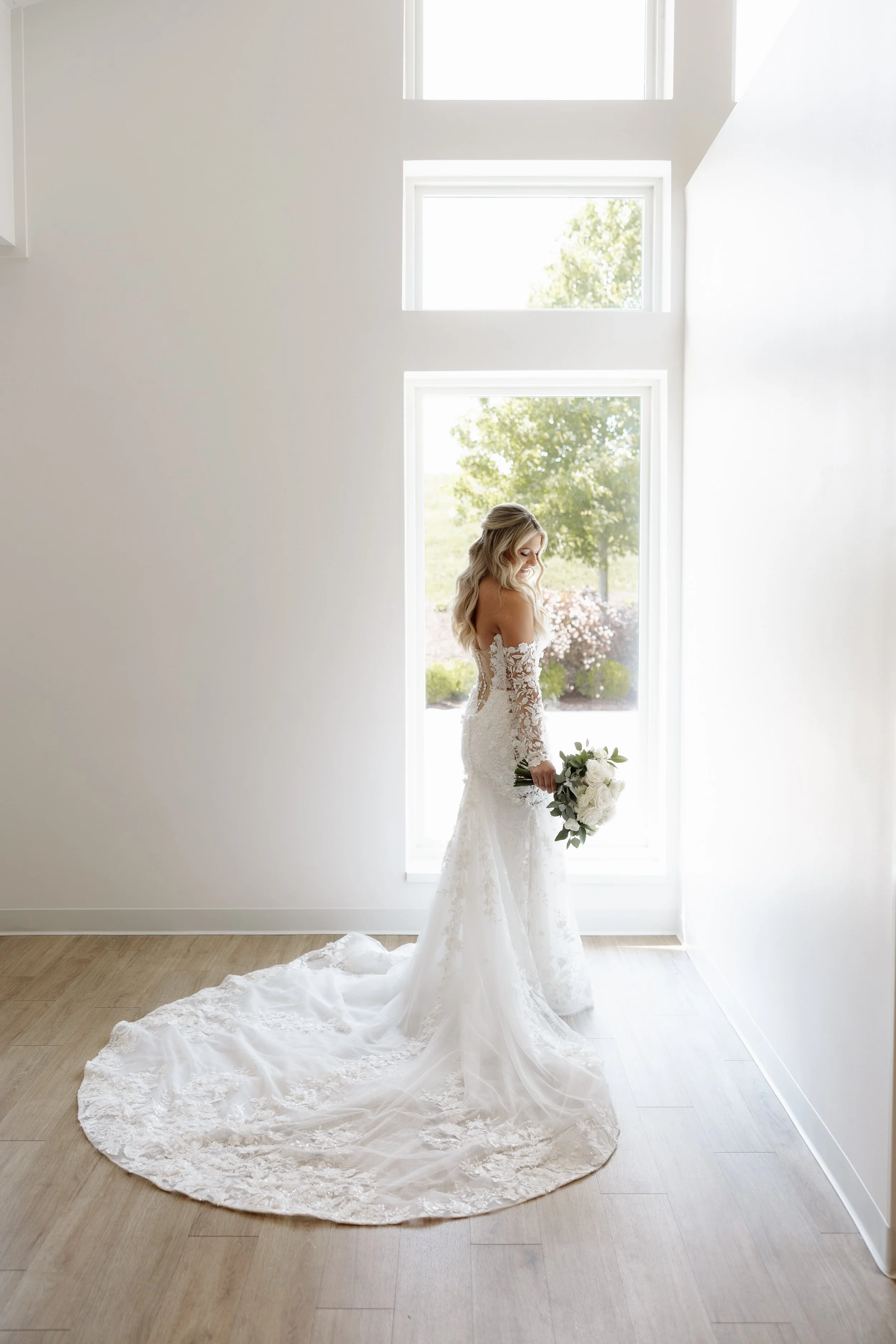 Booking your trial for the month leading up to your wedding is great so that everything is fresh in both of our minds. This is a “rough draft” of your wedding day style so this will not be perfect due to moving the style around to your liking. The perfecting details are going to be noted for your wedding day. Bringing your veil, hair pieces, sometimes earrings are all helpful for your trial! Wearing white can help envision the look as a whole as well.